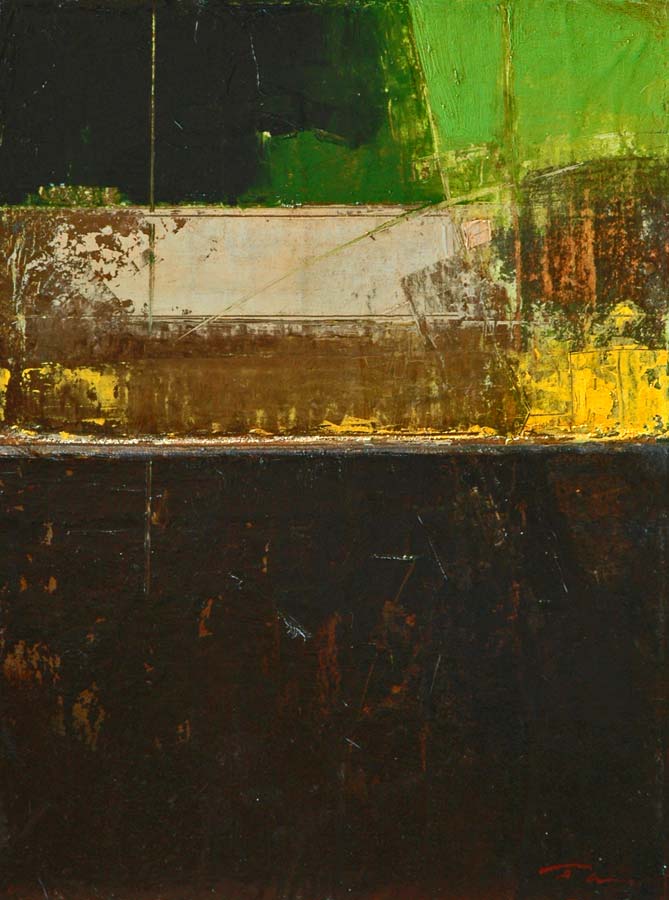 His pictorial turning point happened in the mid-1990’s: he took on a series of travels through the Mediterranean coastal countries and, moving later to the Atlantic coasts, he began to draw inspiration from port environments. His works were first proposed to the public with the solo exhibition “il Blu e la Ruggine” (the Blue and the Rust), curated by Aldo Gerbino, in Agrigento (2001) and then at the Permanente Palace in Milan (2002) in occasion of the “Premio Arte Mondadori” national competition, where his work “Esistenza  Nomade” was awarded with second prize. Since then, his work has regularly been exhibited throughout Italy.